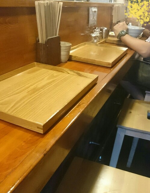 それから5分もしないうちに入店、写真通り店内はかなり狭いですが食事をするには問題ない環境で、スタッフに厳しいと称されていた店主さんも師匠と弟子の緊張感、厳しさはあるものの見てて不快になるようなものでは無く、険しい表情で調理されてますがお客さんに対しては非常に丁寧な接客をされ笑顔で「お待たせしました」「有難うございました」と声掛けされておられます。全てのラーメン店主さんが「こうあるべき」と思えるような気持ちの良い店主さんでした。
