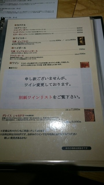 若手社員(永遠の若手?)がこちらに行きたいと言い出したので少し勿体ない気もしましたが、いつもと違う静かなお店で美味しいものを食べながらじっくりと話をすれば、少し問題のある考え方を改めてくれるかと思い訪問してきました(^_^;)