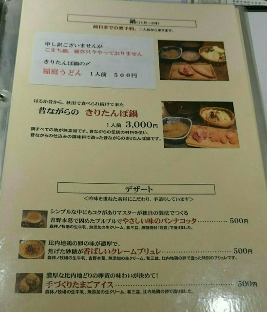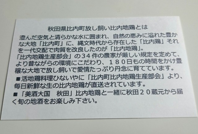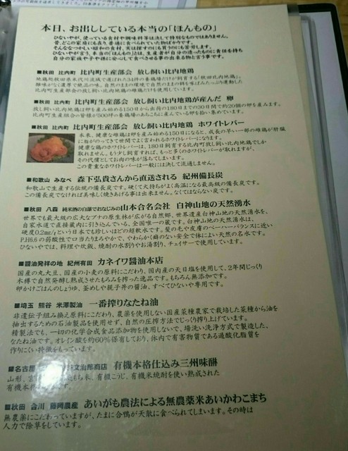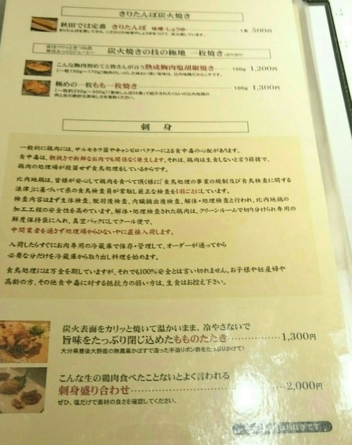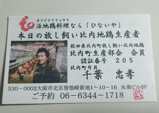 こちらは以前、香里園で営業されていた秋田県比内町の放し飼い比内地鶏を使った有名な鶏料理店らしく、2年程前にこちらに移転されてきたそうです。