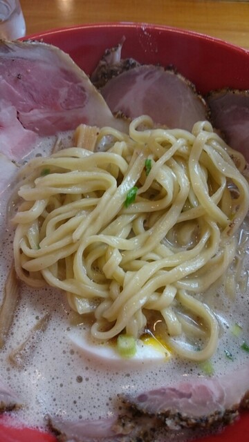 濁とろ塩チャーシュー、ややウエーブのかかった平打ち麺