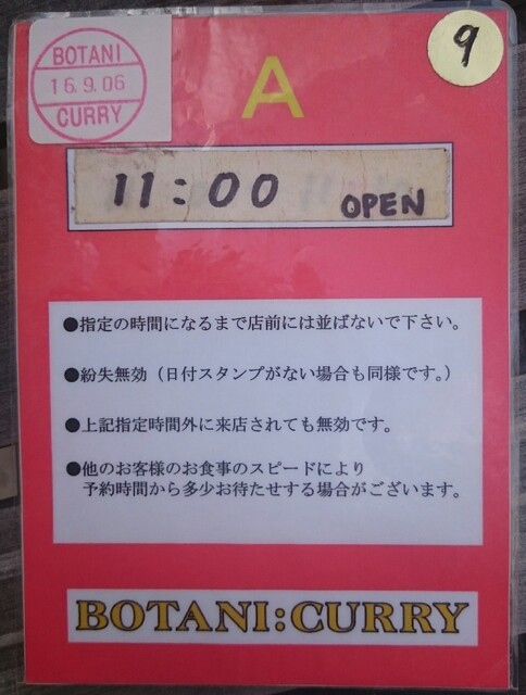 淀屋橋での打合せを10時半頃に切り上げ小走りで現地に到着、店頭の看板を確認すると「只今の入店時間11時」となってたので、急いで整理券を貰いに行くと9番目をゲット、無事に1順目できました(^^)