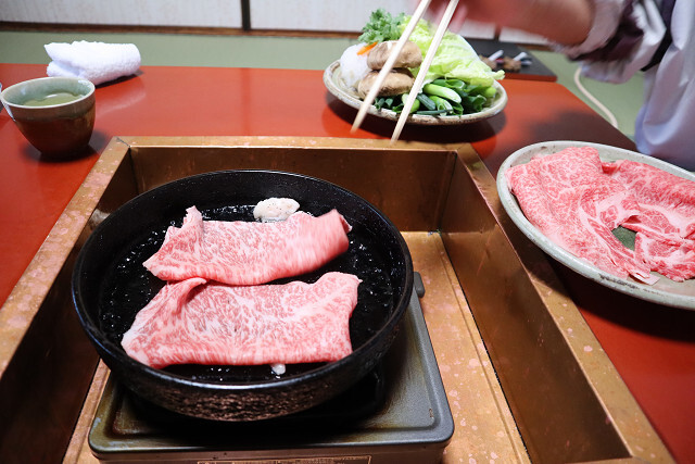 すき焼きを予約しておりましたのですぐにお肉とお野菜が出てきました。