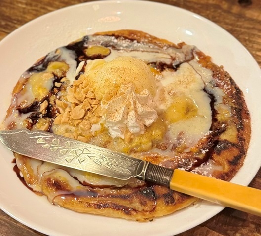 モッチリした生地にアイスクリーム、ホイップ、ナッツ