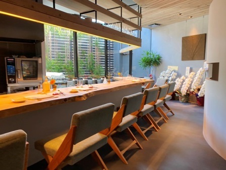 店主さんは京都祇園『千花』で修行を始め、フレンチに転向、ニューヨーク3星レストランAlain Ducasse at the Essex Housで3年間アランデュカス氏に師事、香港ピエール・ガニエール、マンダリンオリエンタル東京レストラン副料理長、エンポリオアルマーニカフェ料理長、上野風月堂料理長、アマン東京料理長を歴任したそうです。