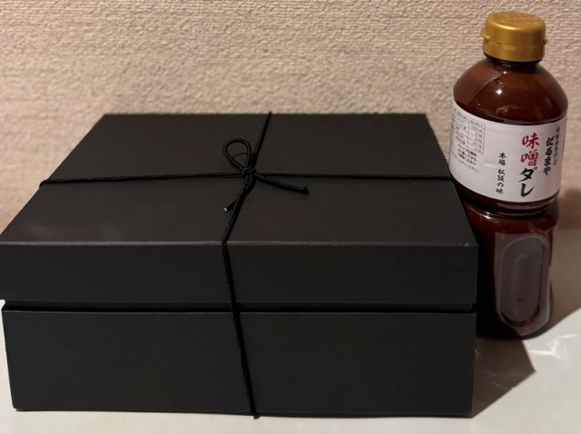 帰りには中川社長から、お土産として黒糖を使った「ブラックタイヤキ」と、「だるまやの味噌ダレ」をいただきました。