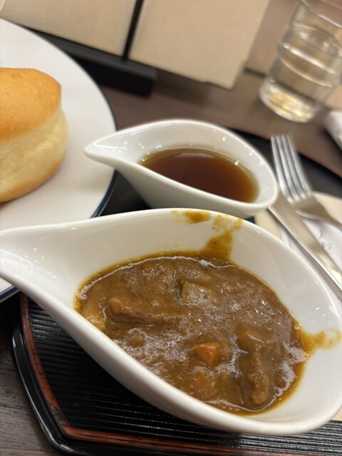 味は普通にもさもさしたパン。メープルとカレーがディップ用についているのがありがたい(泣)
