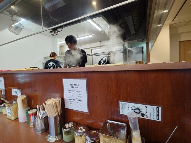 ラーメン中、麺量並、油ギリギリまで少な目、味薄目にてお好み依頼。