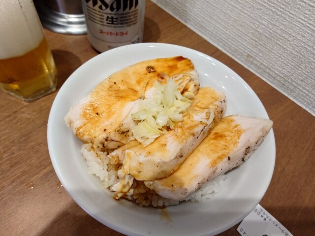 分厚い鶏むね肉のデカいチャーシューが3枚も鎮座。