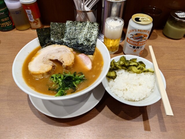 入店して券売機にお札を3枚吸い取られ、ビールのボタンを3回連打(笑)