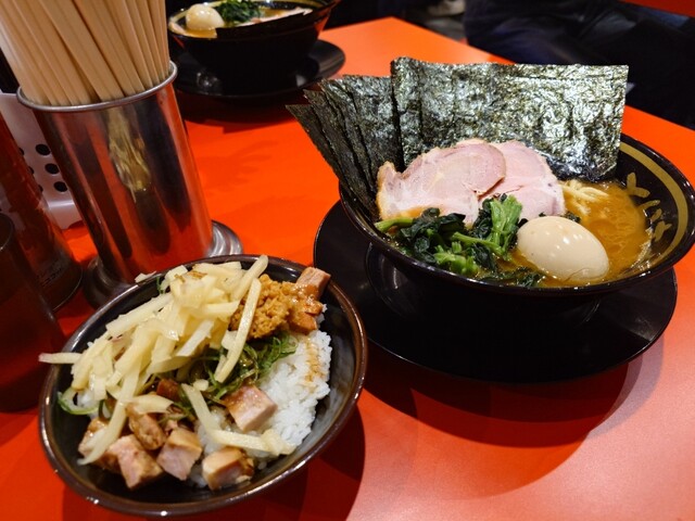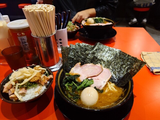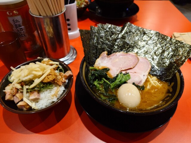 間もなくラーメンも着丼。スープを啜り、久しぶりの家系の旨さにノックアウト!