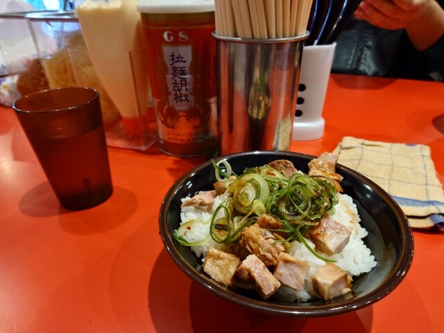 着丼後、素早く「無限ニンニク」と「生姜の千切り」をオンざ丼。