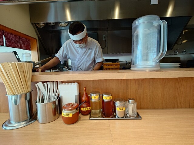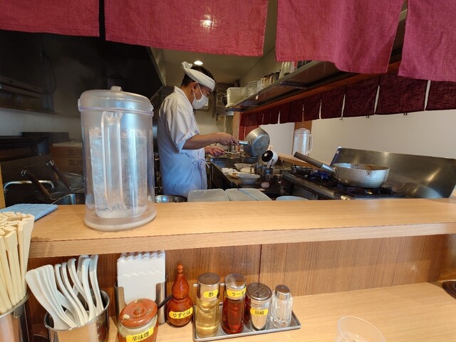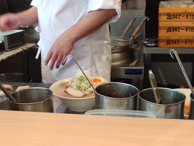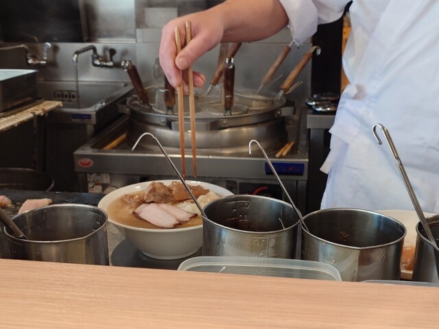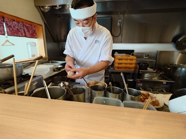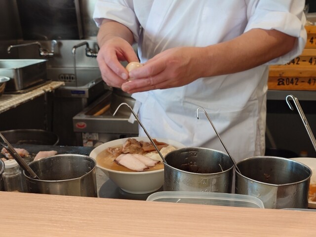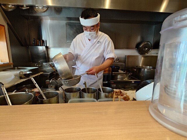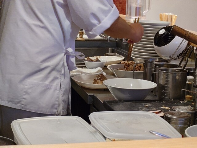 豚骨グループの厨房の景色とは違い、まさしくカウンター割烹のようなご主人の手捌きを眺めながら着丼を待ちます。