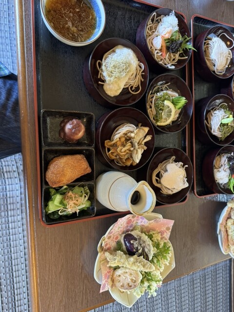 私はここが一番好きです。一度に色んな蕎麦に天ぷらとドリンクがセットの蕎麦御膳(名前違うかも)がお勧め。その他にもカツ丼やカフェメニューも美味しいです。なんと言っても猫が可愛い。ボンタ君とハル君がいます。時々店内に入って来るので自由に触れますが猫アレルギーの人は注意が必要です。