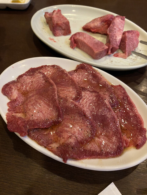 事前にトラジ焼きの塩とタレ、サガリの塩とタレ。特上タンを取り置きしてもらいました。