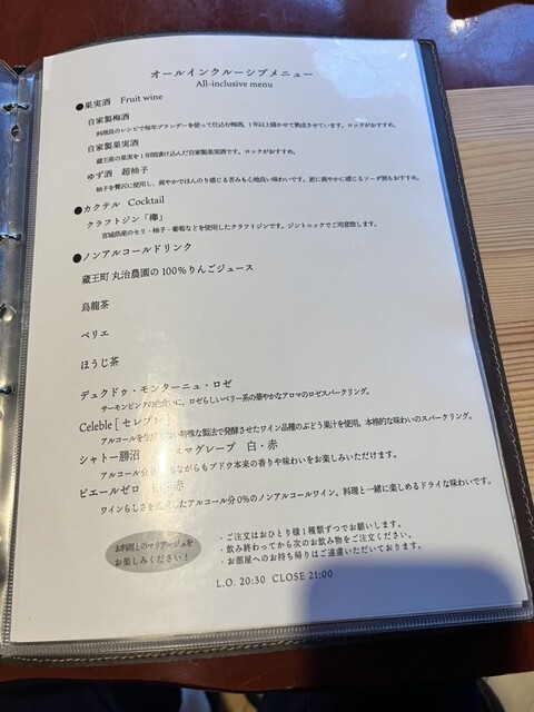 夕食は半個室で付かず離れずの接客がとても嬉しく良い時間を過ごせました。もしかすると一人客だったので気を遣っていただけたのかもしれません。バーテンダーみたい。食事は味付け、量がちょうど良く、食材もオーソドックスながら質の高いものでした。鮑やひれ肉の火入れも完璧でした。野菜も結構あり地元のものも多そうでした。お酒ははじめペアリングでいくつか頂き、あわせて地の日本酒やワインと比べてみたりして愉しく過ごせました。ごちそうさまでした。