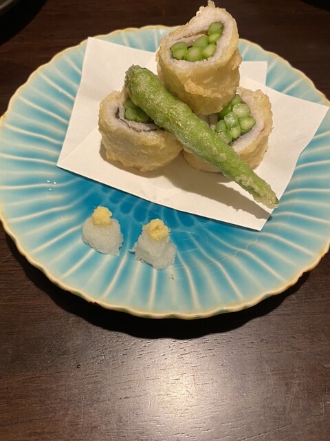 鱧もあり、この日はアスパラ巻き天麩羅
