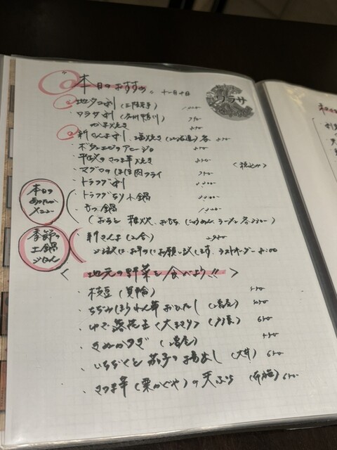 今回は本日のメニューから