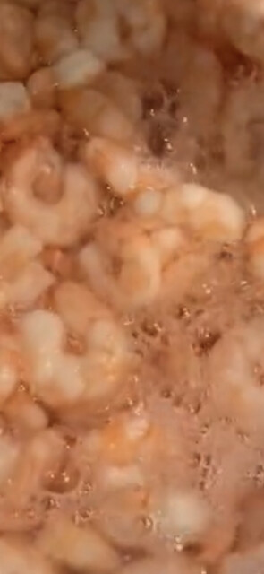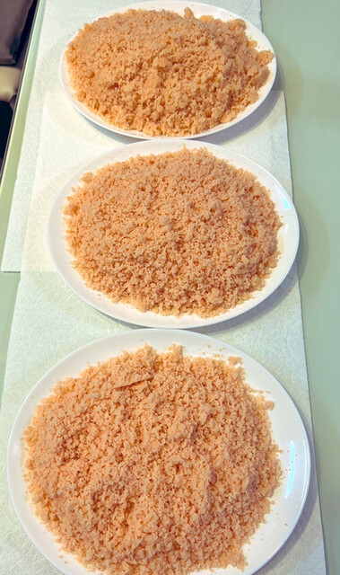 海老そぼろの出来上がり、酢飯の上にかけてありました