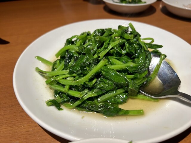 ランチに食べて感動したので、再訪。腸詰めと卵炒め、黒酢酢豚、初物の豆苗炒め。とにかく最高!胃にもたれない中華はここだけ!ここの豆苗が本当のもの!ほかのみせのかいわれみたいなのはニセモノ!小籠包も!