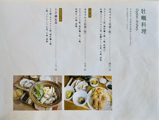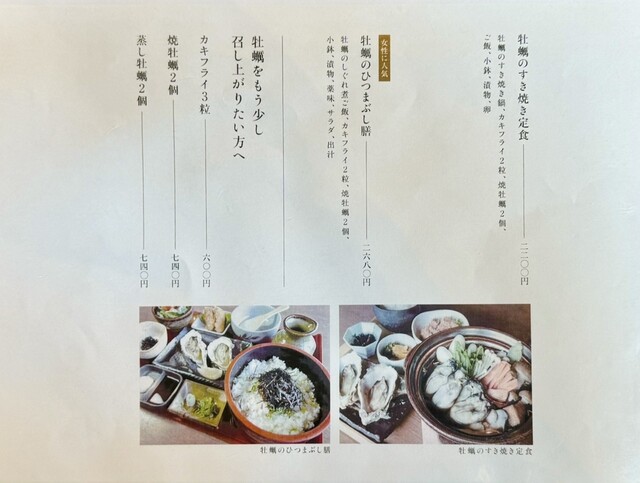 「牡蠣の土手鍋定食 2380円」メニュー