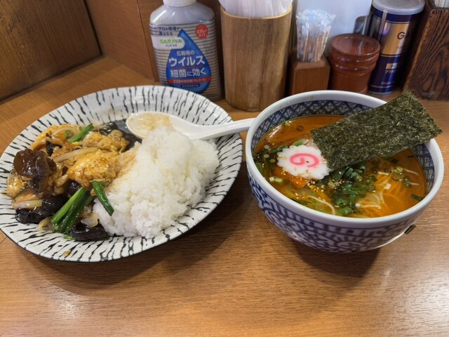 日替りSET (「玉子キクラゲ炒め丼」と「ピリ辛マーラーメン」) を完食! 2024年12月26日