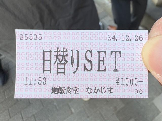 外並びの先頭付近になったところで、食券を買いに一旦店内へ。このタイミングについても、店員さんから指示があります。店内の食券機で「日替りSET 1000円」の食券を購入。支払い方法は現金のみ。食券機は新札にも対応していました。