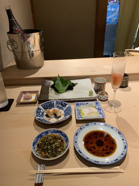 西麻布の交差点近くにある老舗のお寿司屋さん。コース料理の様に供される一皿ひと皿に唸り痺れます。
