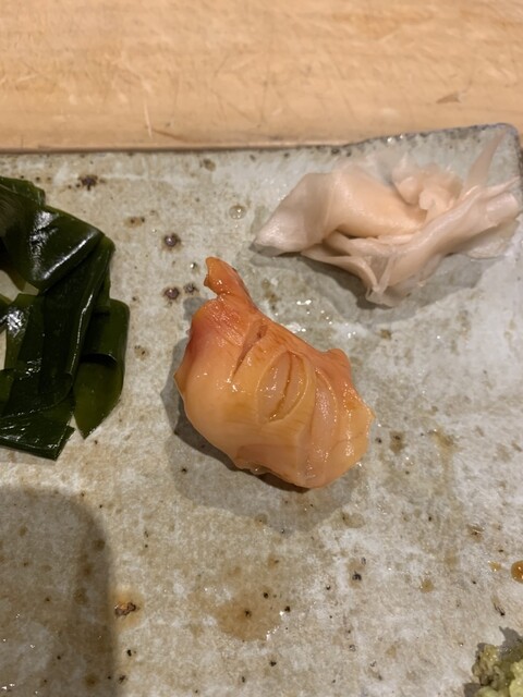 根元の方の昆布と云う事で、グッと強く味が入った昆布締めで、コレも好きな感じ。兎に角、旨みがギュッと。今日の昆布締めは同じ感じらしい。嬉しい。