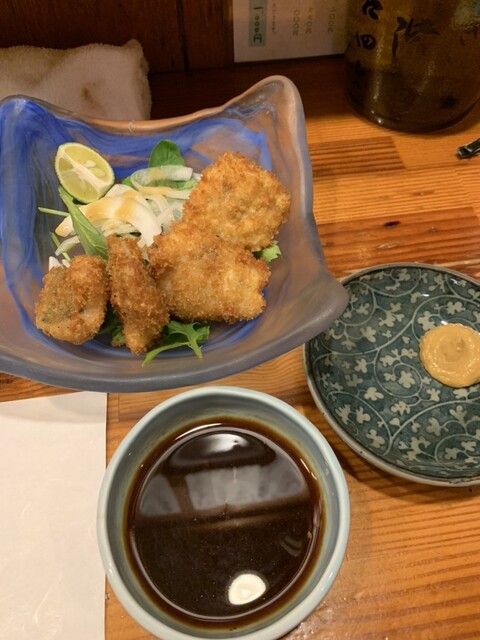 コチラのフライはパン粉揚げ。アジも美味しいですが牡蠣も旨い。