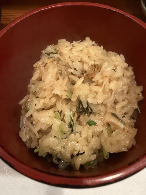 〆もお勧めです。コチラは注文毎に土鍋の炊き込みご飯が兎に角旨いです。お試しを。