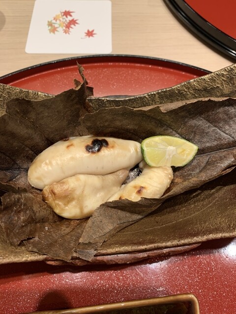 大分先取りのまったけです。兎に角、よこ倉の出汁が、ホントに良い加減でじんわり沁みてきます。まったけも勿論、それぞれ旨い。新銀杏もサクサク旨い。出汁も残しておき、口(添えや風味付けの事らしい)のすだちを絞って味変。キリッとスッキリ。