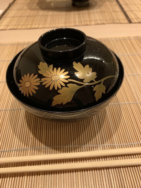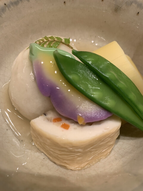 百合根の饅頭が旨い。ねっとりに枝豆の餡が素晴らしい。しかし、出汁を吸ったお茄子のお麩が美味過ぎて驚く。