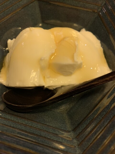 コレですコレ。私が長い事探していた『奇跡の杏仁豆腐』。昔地元で通っていたお店で、一度だけ味わった杏仁豆腐。絶賛、最大の賛辞で今後もこの杏仁豆腐を!と懇願したが、どうやら奇跡の一皿だった様です、まさに一期一会。完全に一致ではないが、寒天とプリンの間、もっちりねっとりしてるがキレもある。自然な香りと甘味。本物の杏仁を使った最高の杏仁豆腐。普段より相当な量を食べましたが、最後のデザートまで感動しました。