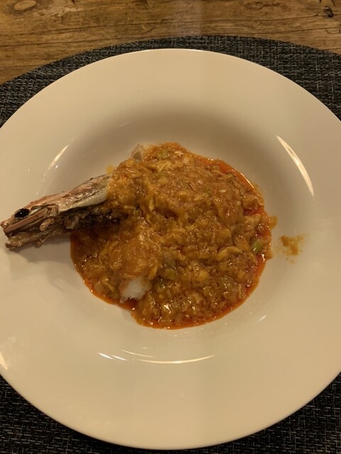 ビスクの様に殻でガッツリとスープを詰めてエビポタでチリソースを。有頭海老がサックリと揚がった衣の香ばしさとソースを吸った濃厚さと。口の中が海老の大洪水。『タレで喰わす』の意味が大分違う。和食の様に出汁や旨味がガツンと効いた『タレ』が一つの完成形に。シャープでスッキリサッパリの対極。後を引く旨味と、タレと具材の一体感。凄い。花巻が有ると更に、なんて話していると、土鍋炊きのご飯が登場。海老の頭を外して、ミソとタレと炊きたて白米と。先ずお米が旨すぎる。粒だったお米に悪魔のエビチリソース、今日の優勝。イケナイ旨さです。
