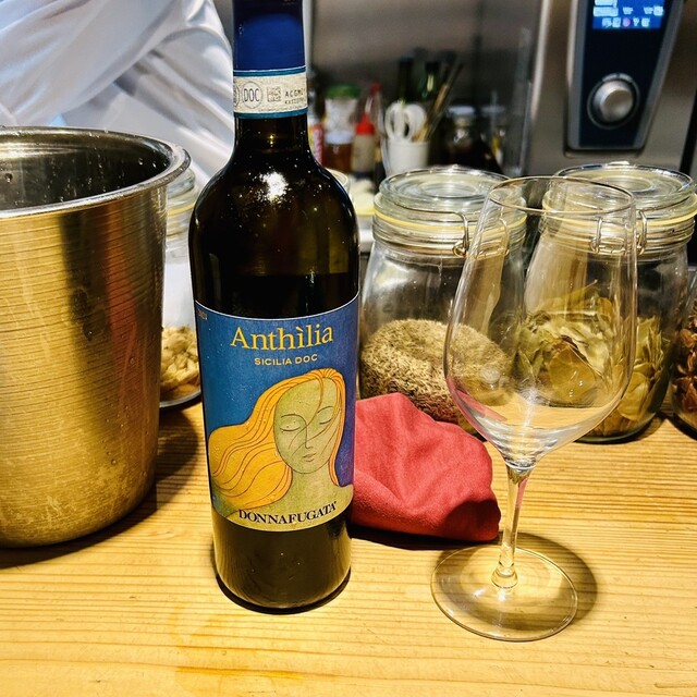 •「食べられる辛さの唐辛子です。」との素揚げの唐辛子やビーナッツをソースに付けてパリポリ齧りながら、切り替えた白ワインが進む。