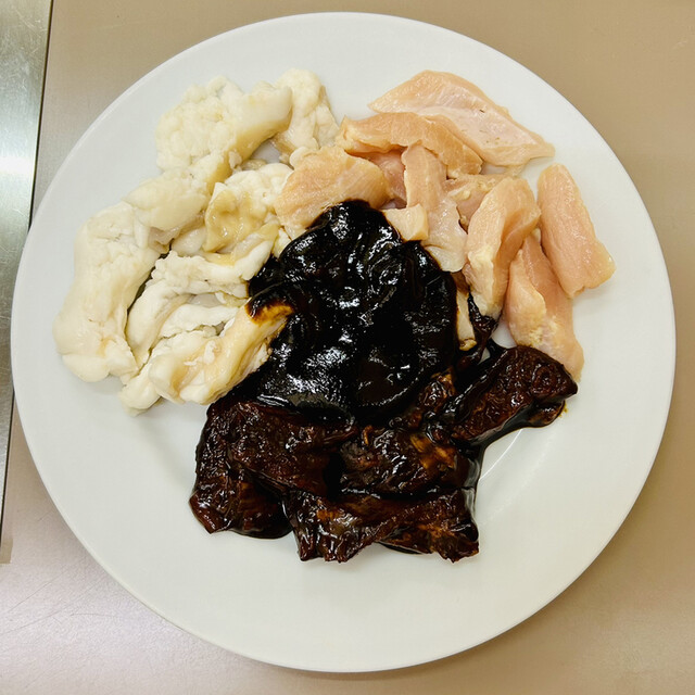 •3種の中央に掛けられているタレのみでは無く、元々このタレを纏った、漆黒の“ホホ肉(ハラミ)”。