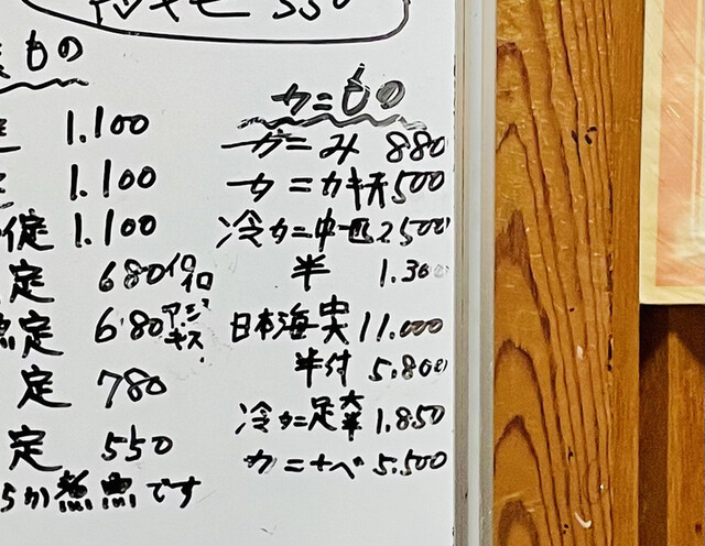 •“ボイル蟹”は、ホワイトボードメニューで言うところの“冷カニ姿 半み(酢)”にあたりそう。