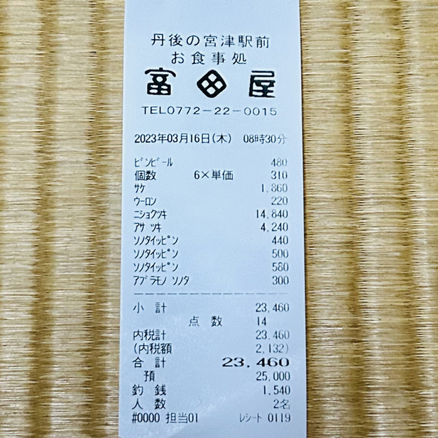 レシートを見て、これが¥320は“富田屋”の面目躍如。