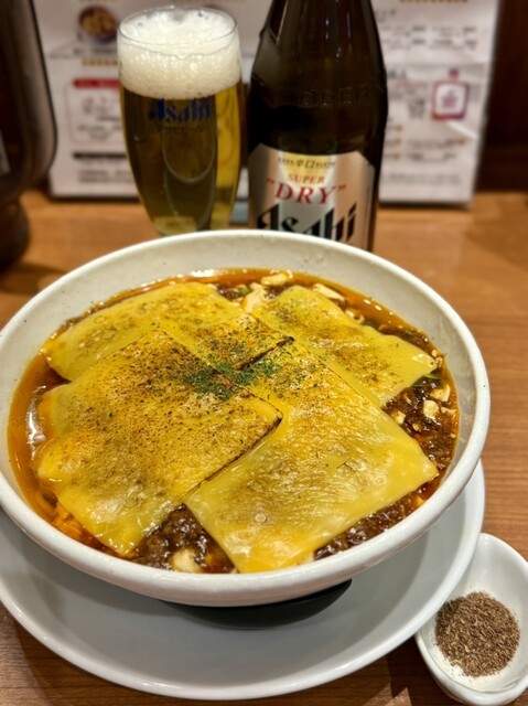 焼きチーズ麻婆麺に追チーズトッピングしたらとろとろでめちゃうま❤️〆はチーズリゾット風!