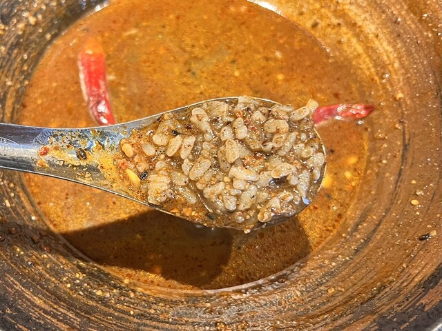 辛さは選択できなくて、ちょっと辛痺が物足りなかったので卓上の花椒、青山椒、香味酢で自分好みに味変しました。