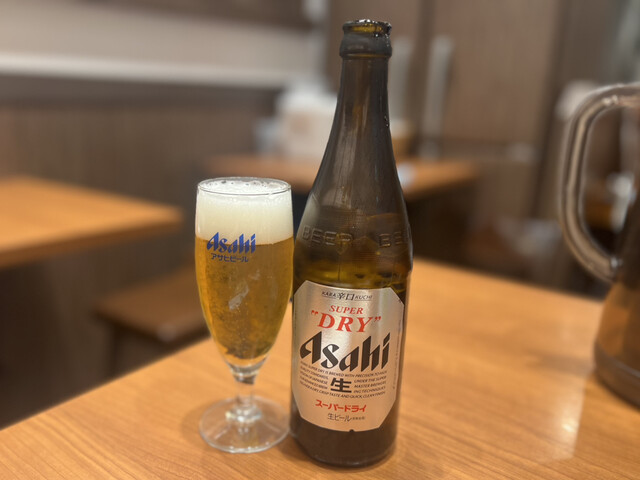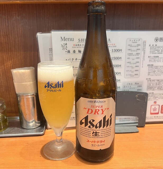 • アサヒスーパードライ中瓶550円 焼きチーズ麻婆麺 倍辛 1400円 痺れ激増し100円