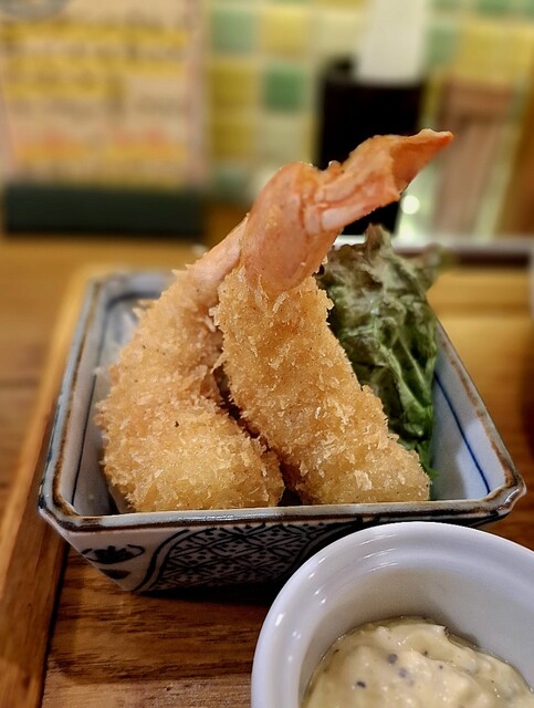 追加したエビフライもしっかり大ぶりでプリプリ。なにより丁寧に作られたタルタルとのコンビは誰の追随も許しません。もちろんあら味噌汁も高菜の漬け物もむちゃくちゃ高いレベルで大満足でした。