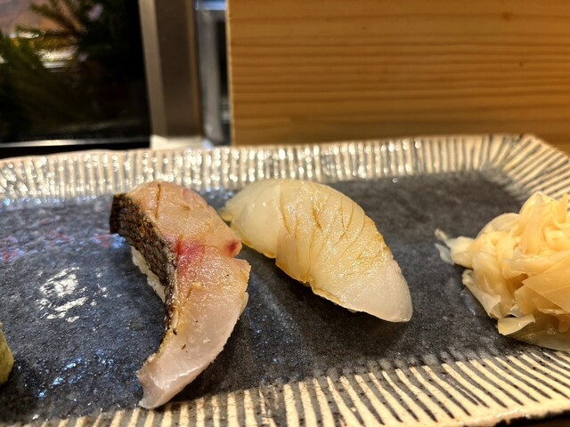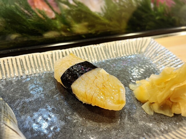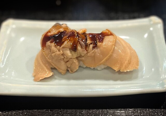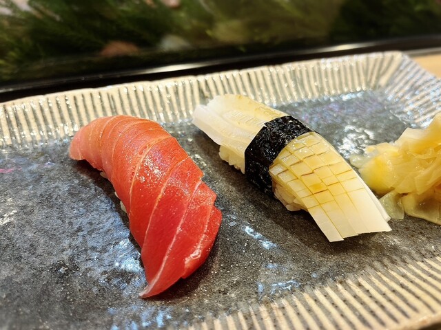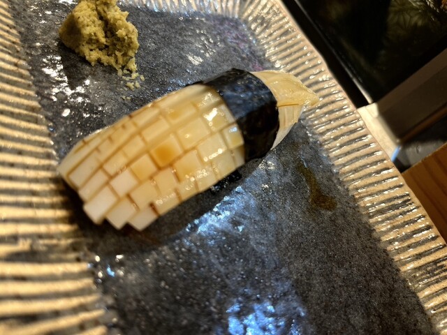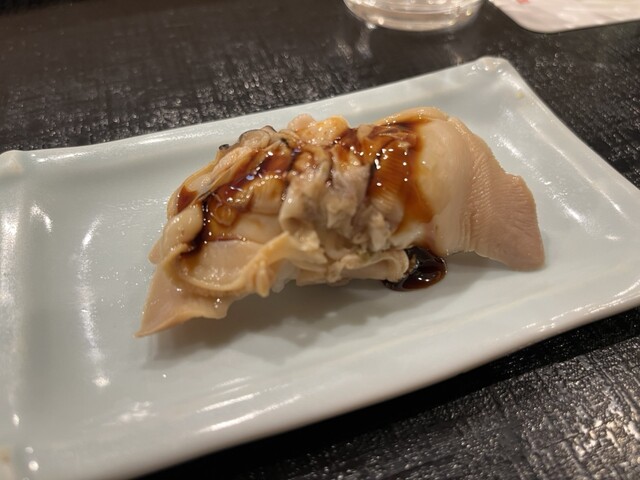 最初につまみで、煮アワビ、煮ダコをいただいてから、握りスタート!