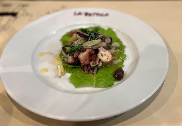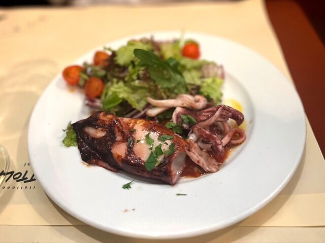 前菜 ヤリイカのグリル辛いトマトソース サラダ添え