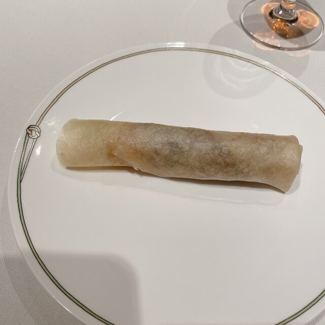 北京ダックは今まで見たなかで最も細く巻かれていて美しいシルエットでしたが、皮がパリッとしてあっという間に食べてしまいました。