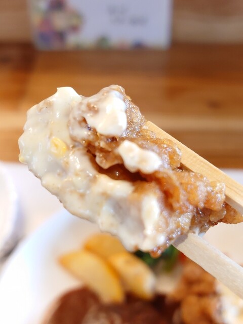チキン南蛮は、甘めのちょい酸味のトロ〜っとしたソース(タルタルって言うのかな、コレ?)がモモ肉とピッタリ合って鋳て美味しかったですね(ノ≧ڡ≦)