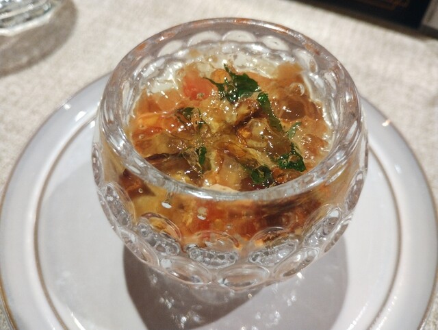 トマトのムースのパフェ仕立て ビール:宇宙ビール