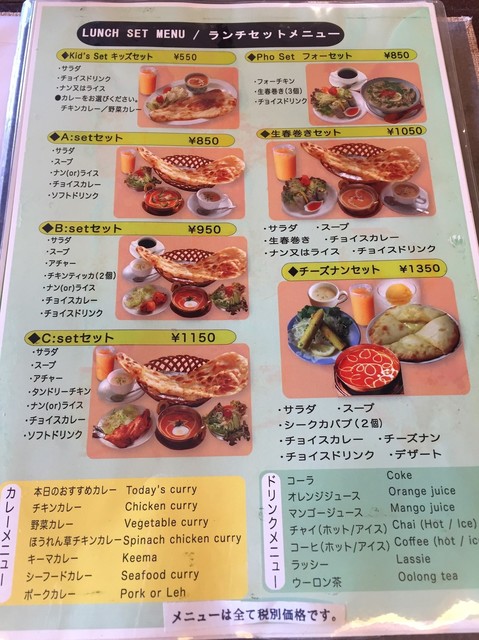【メニュー&税込価格】