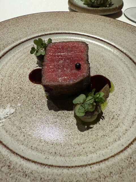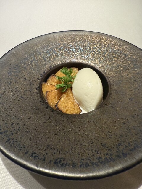 松茸のフリットも食感がよく、噛むとジュワッ出汁が、暑いので食べる時は気をつけて少しづつ笑