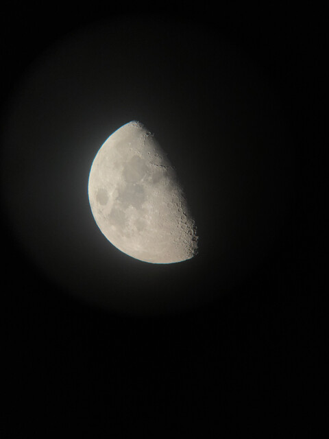 続いて屋上に上がり、天体望遠鏡で月を見る。
